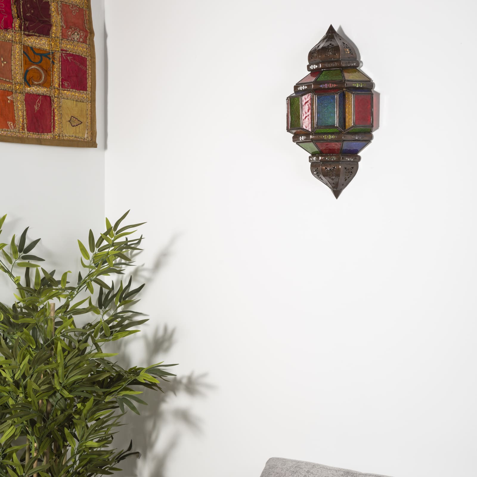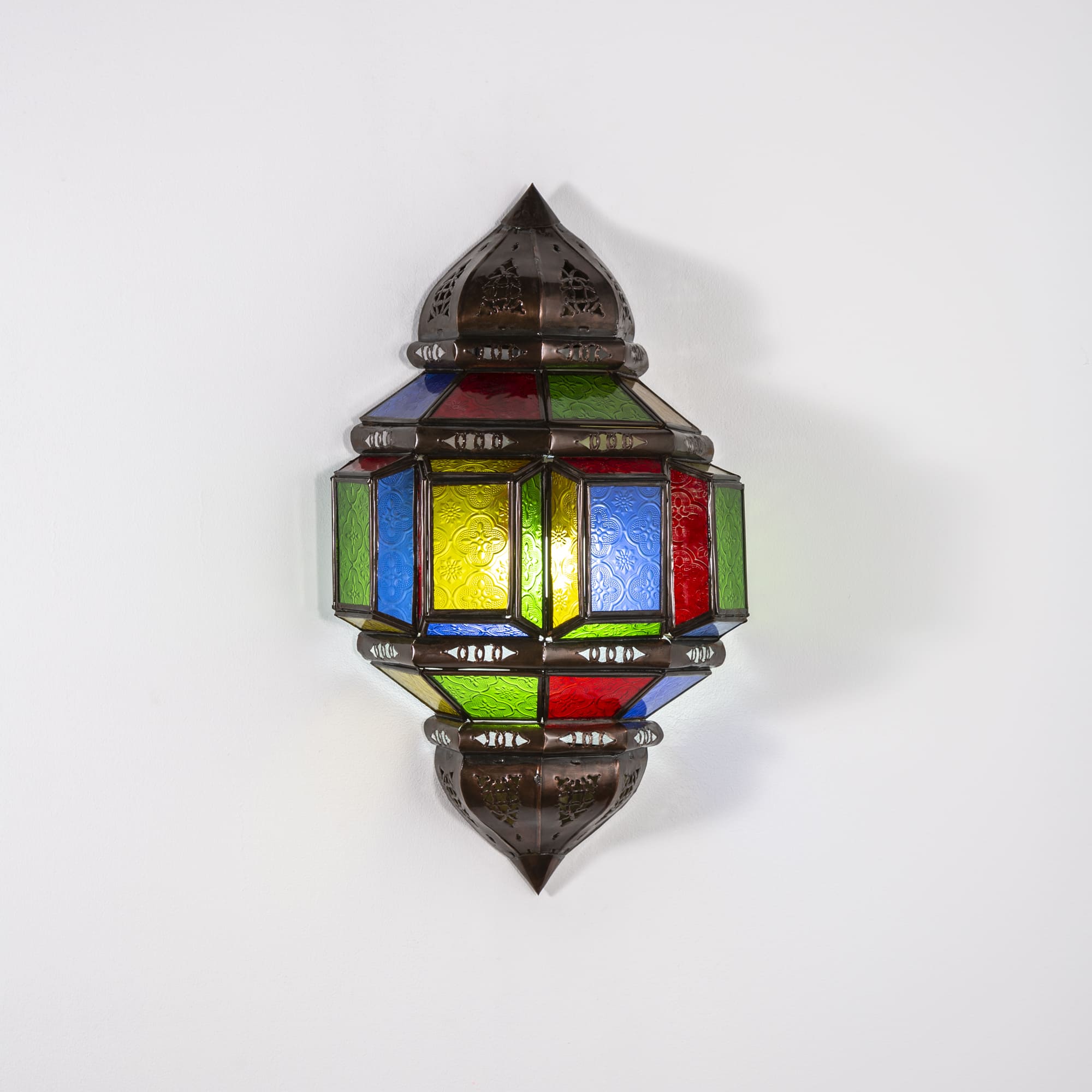 Il modello Rakkas è una lampada da parete in stile arabo, realizzata in vetro e ferro battuto. Creata artigianalmente da artigiani marocchini, questa lampada da parete rustica è pensata per creare un ambiente decorativo rilassante con una luce morbida e piacevole per i vostri spazi.