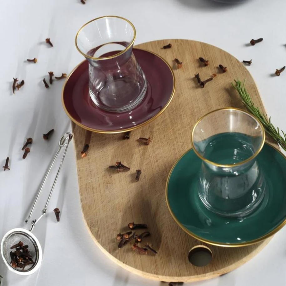 Set di 6 bicchieri da tè turchi con piattini coordinati, in vari colori. Gustate le vostre infusioni e i vostri tè preferiti con questo eccellente e raffinato set di bicchieri turchi di RAKLE.