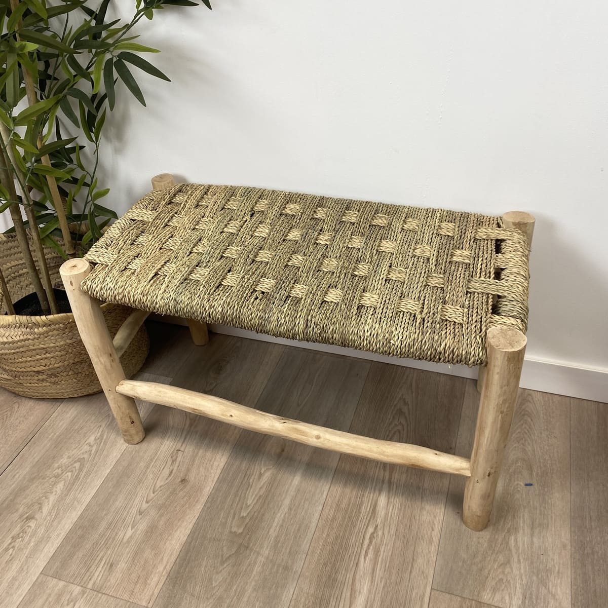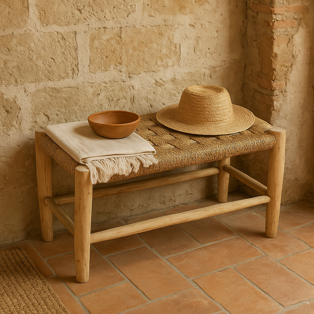 Panchina artigianale realizzata in legno di limone e sparto – Eleganza rustica marocchina