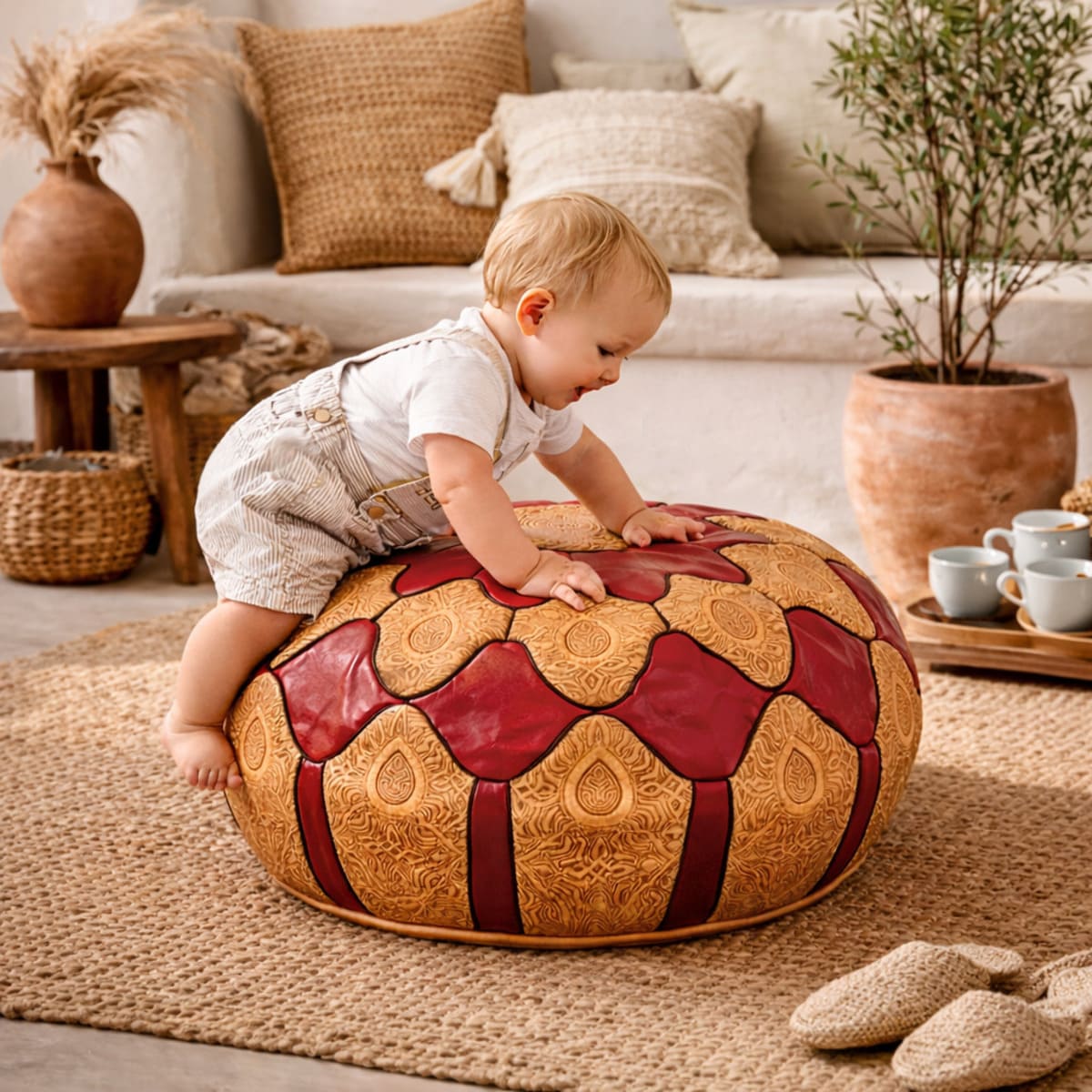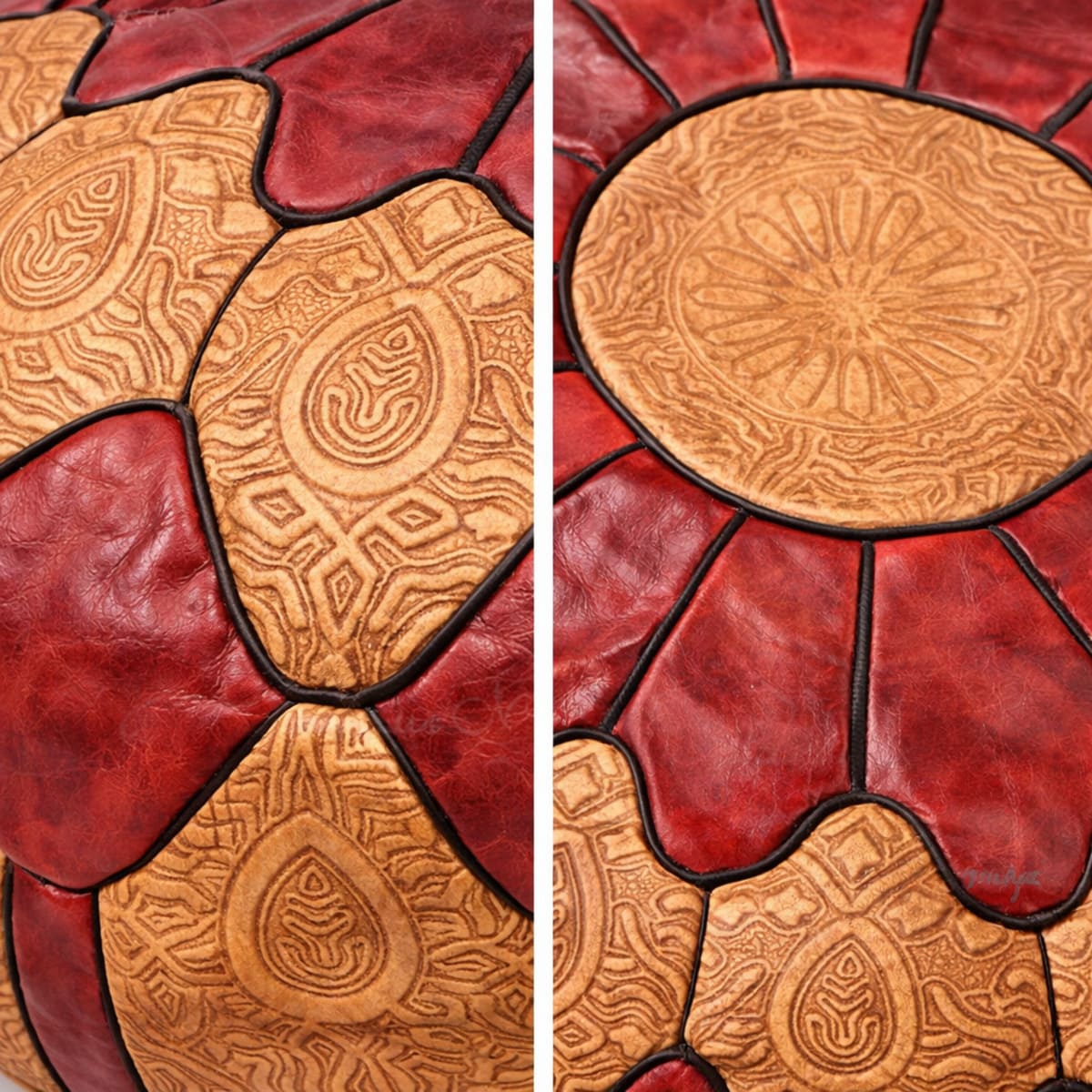 Prodotto in Pelle naturale, lavorata a mano in Marocco, Mantiene l'essenza della tradizione con un design pulito e versatile. Perfetto come seduta aggiuntiva, poggiapiedi o elemento decorativo di carattere.