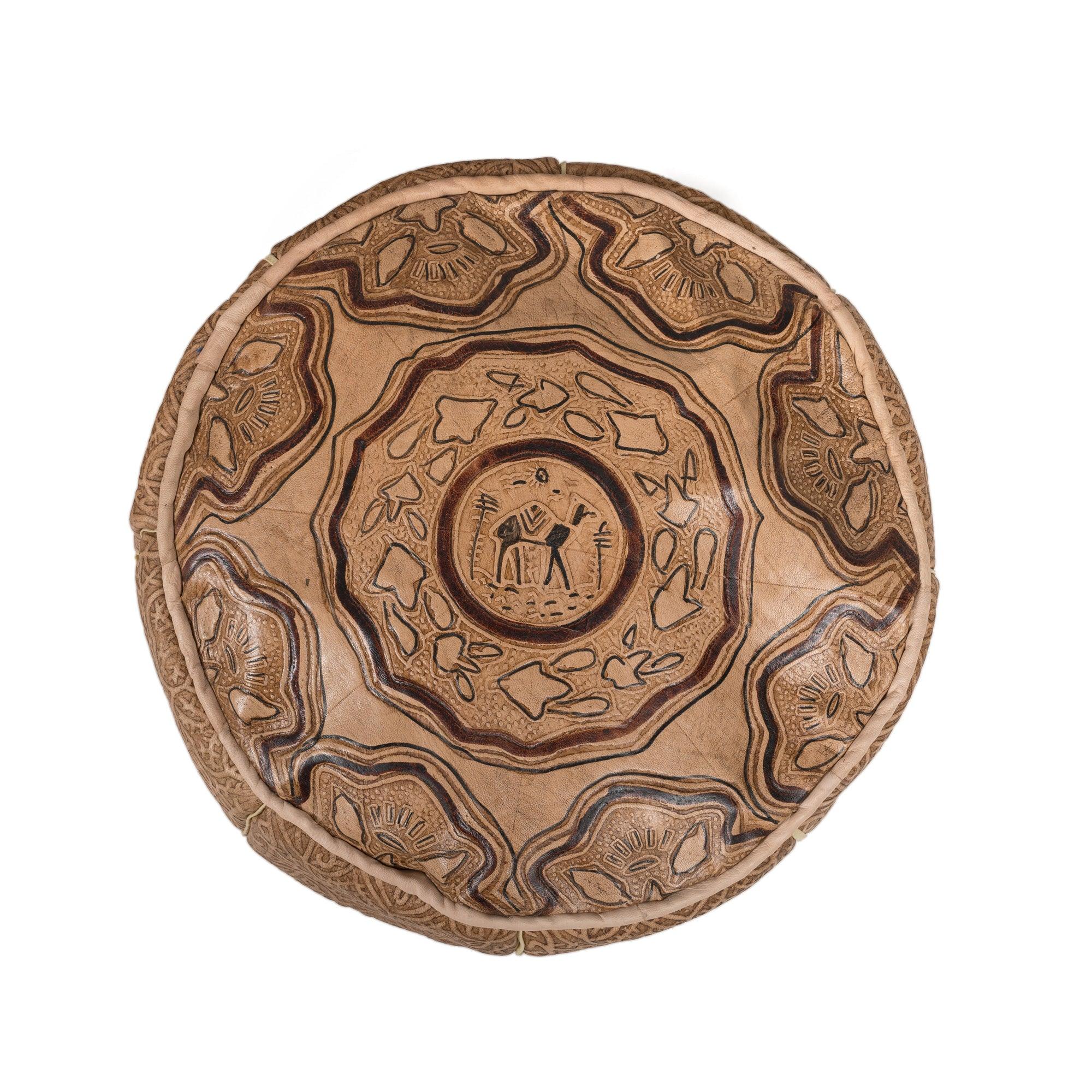 Set di 5 pouf in pelle con stampa cammello, decorati con motivi e stampe etniche tradizionali marocchine che richiamano i suoi aridi deserti. Ricreano l'atmosfera desertica del tuo soggiorno, di un angolo accogliente o di una camera da letto, aggiungendo un tocco di moderno stile arabo. Si integrano perfettamente in arredamenti arabi, vintage, industriali, classici e persino moderni e minimalisti.