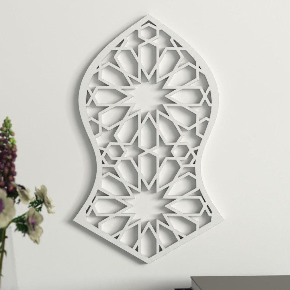 Opera d'arte moderna in stile arabo realizzata con intarsi in legno, un autentico elemento decorativo arabo per la tua casa. Caratterizzata da un design a forma di stella, richiama le decorazioni dell'Alhambra e del cortile del Generalife. Pensata per aggiungere un tocco moresco e contemporaneo alle pareti e ai corridoi della tua casa, cucina o camera da letto.