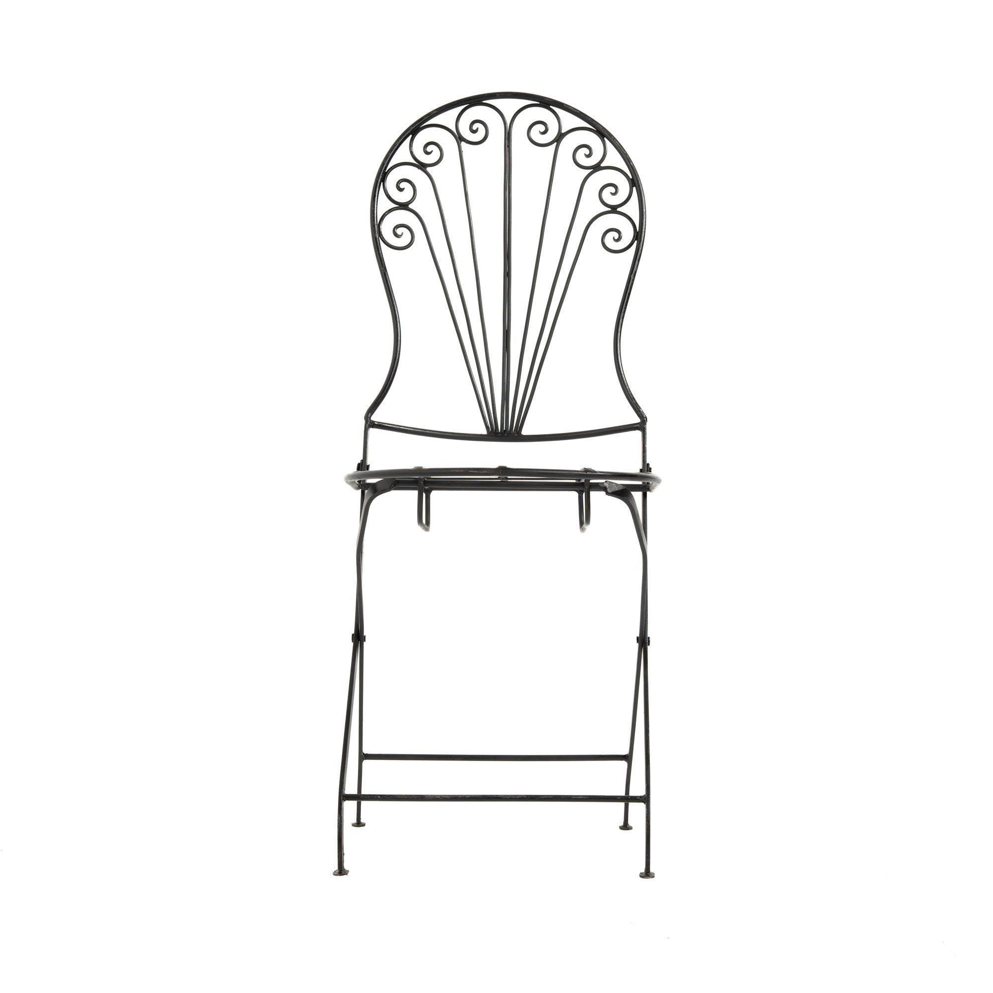 Sedia marocchina in ferro battuto nero, pieghevole. Perfetta per patii e spazi esterni, facile da riporre e spostare. Design marocchino moderno del 2022 per il tuo giardino.