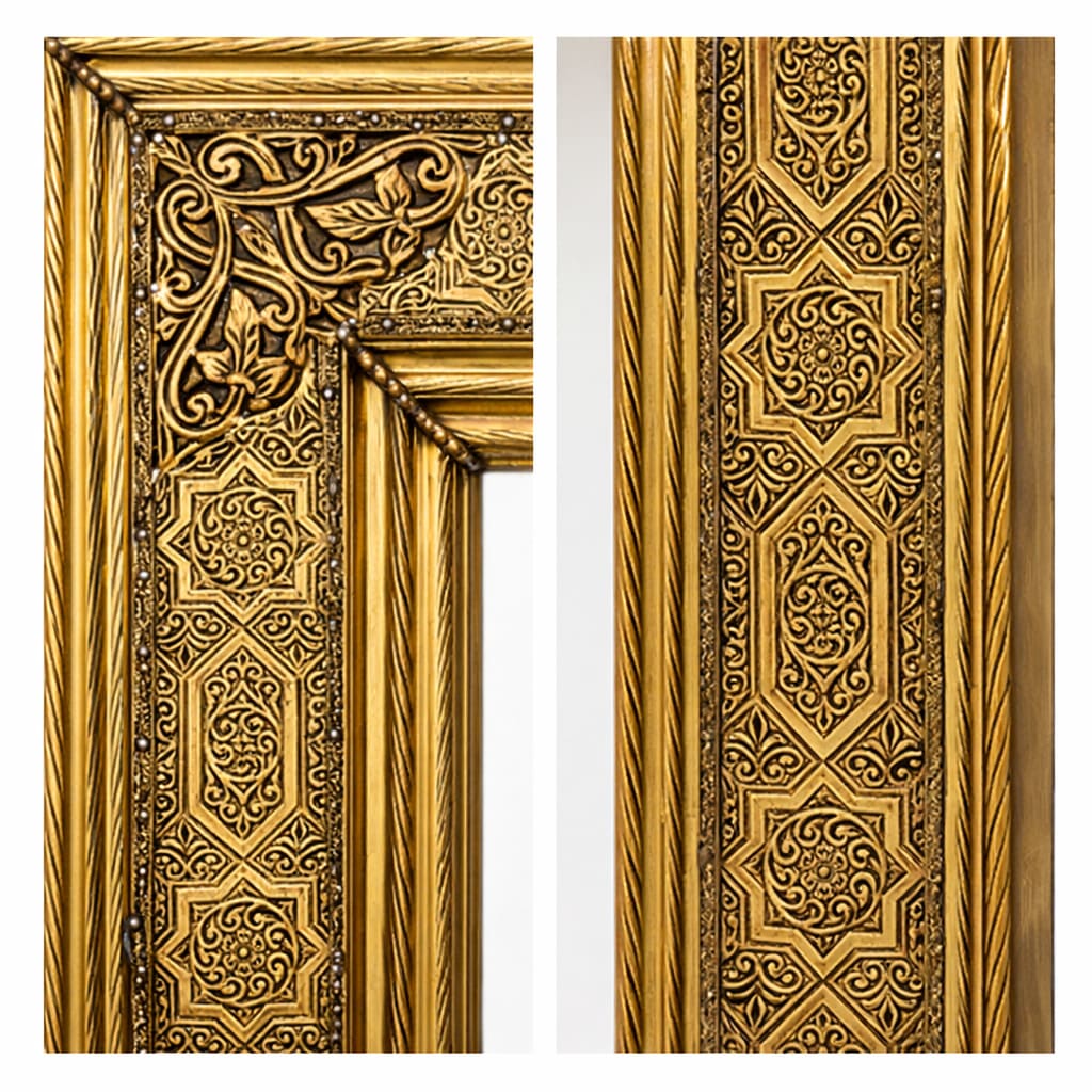 Specchio arabo in stile moderno, realizzato a mano in alpaca dorata. Design Ourika, ispirato alla geometria di Al-Andalus.